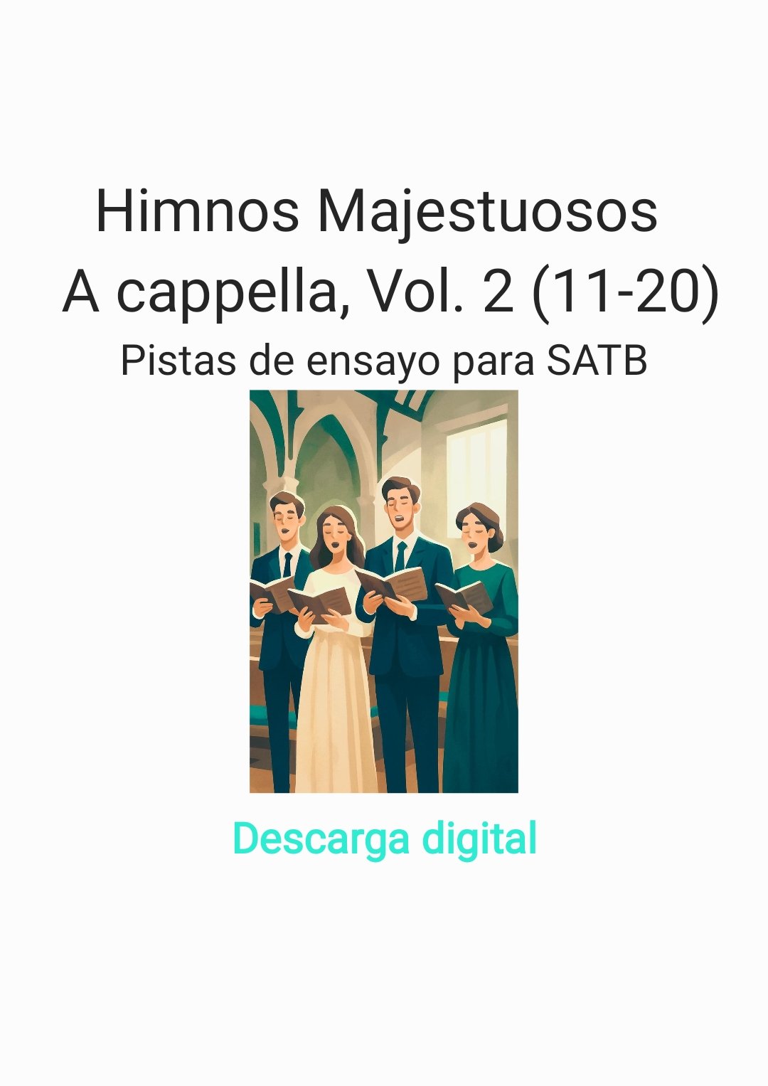 - Este producto contiene las cuatro voces cantadas: SATB (Soprano, Alto, Tenor y Bajo) del álbum »Himnos Majestuosos | A cappella, Vol. 2»,el cual contiene los siguientes himnos:Oh, que tuviera lenguas mil – Mi canto – ¡Oh, cuánto le amo! – Engrandeced a Dios – ¡Gloria! ¡Gloria! – Del alba al despuntar – Aleluya – Alma, bendice al Señor – Eres digno, oh Señor – La Doxología.